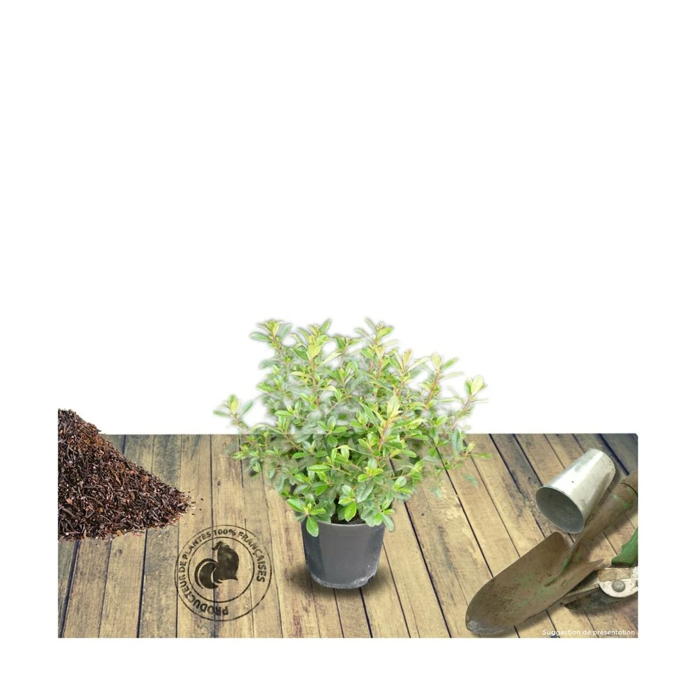 cet arbuste au port arrondi et au feuillage vert, brillant et persistant dispose d’une jolie floraison rose foncé apparaissant dès le mois de juin et s’étalant jusqu’en août.