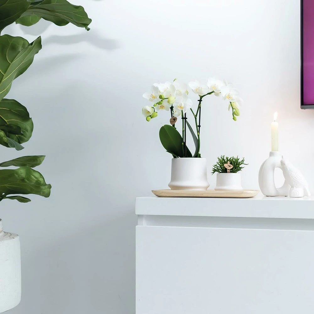 Haworthia Limifolia Et Son Cache-pot Blanc – H16cm, ø9cm – Plante D’intérieur