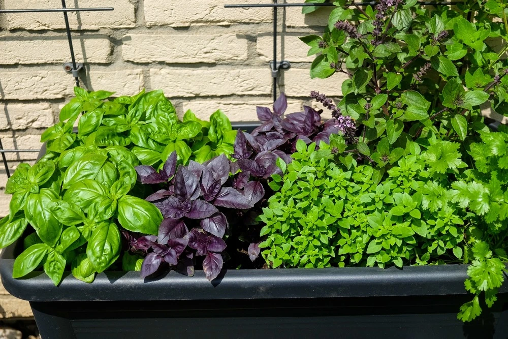 le basilic aromatique est l’une des herbes royales de la cuisine. Ses feuilles courbées ont un arôme épicé et inimitable et sont parfumées de jasmin, de réglisse et de citron. Les plats de la région italienne de ligurie sont marqués par son odeur et la création la plus célèbre de cette cuisine est le pesto alla genovese. Traditionnellement, il est fabriqué avec du basilic vert génois, mais la variété rouge du basilic est aussi adaptée pour sa préparation. De plus, les feuilles du basilic rouge sont une décoration colorées sur tout plat. Il est mieux de cueillir le basilic est lorsque ses feuilles sont encore petites, car c’est là que son goût est au plus intense. Le basilic est l’ingrédient pour les plats méditerranéens et est le partenaire parfait pour les tomates, la salade, et les sauces. Evidemment, il est aussi idéal pour faire du pesto. Pour le préparer, il vous faut des pignons de pin légèrement grillés, du basilic, du parmesan ou une alternative végétarienne, de l’huile d’olive, des gousses d’ail, ainisi qu’un peu de sel. Mettez les ingrédients légèrement mousseux dans un mixeur et mélangez avec des nouilles chaudes. Délicieux ! Le basilic pourpre est aussi un complément intéressant aux desserts et sorbets sucrés que vous devez impérativement essayer. Conseil : le secret du basilic de la ville ligurienne de pra, la patrie du meilleur basilic, est censé être une légère fertilisation avec du fumier de cheval. Enlevez régulièrement les extrémités pour pousser une plante ramifiée et touffue. Il ne faut pas dessécher les feuilles, car elles perdent leur arôme très rapidement. De même, il n’est pas conseillé de les geler, car les feuilles sont très détrempées suite au dégel.