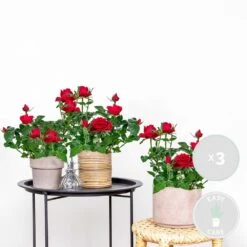 3x Pot Rose Rouge – Rosa – Plante D’intérieur & Terrasse – ⌀12cm– ↕20-30cm